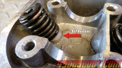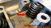There are a couple of ways to look at the cylinder head with the valve cover removed and tell if your engine has 64mm or 69mm valves. One is to look across the top of the head and see how far the valve and valve spring protrude above the flat surface of the head. The 69mm valve will sit up higher above the head as shown in the photo below. You can see the whole top of the valve spring and retainer while looking across the 69mm valved head.