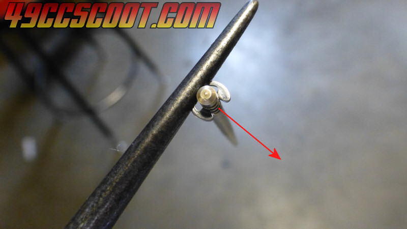 Once you have set the idle so the scooter is running smoothly and at an appropriate speed, apply a small amount of throttle briefly and release it. If engine RPM hangs, you should adjust the mixture screw to richen the mixture until RPM no longer hangs. If RPM drops below idle when you let off of the throttle or as the engine idles for a while, try leaning the mixture setting slightly.