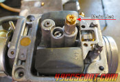Once the carburetor is known to be clean with a proper float height setting and able to idle, I begin trying to find the proper main jet. If you've checked the float or cleaned the carburetor you've already seen the main jet. It's usually near the center when you're looking at the carburetor with the float bowl removed.